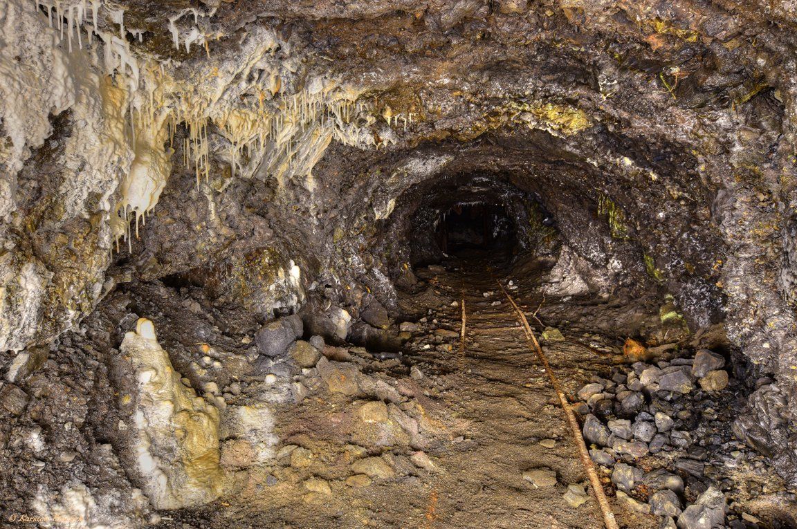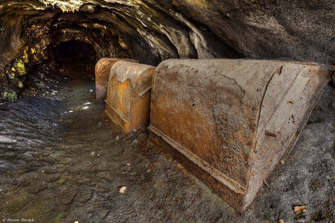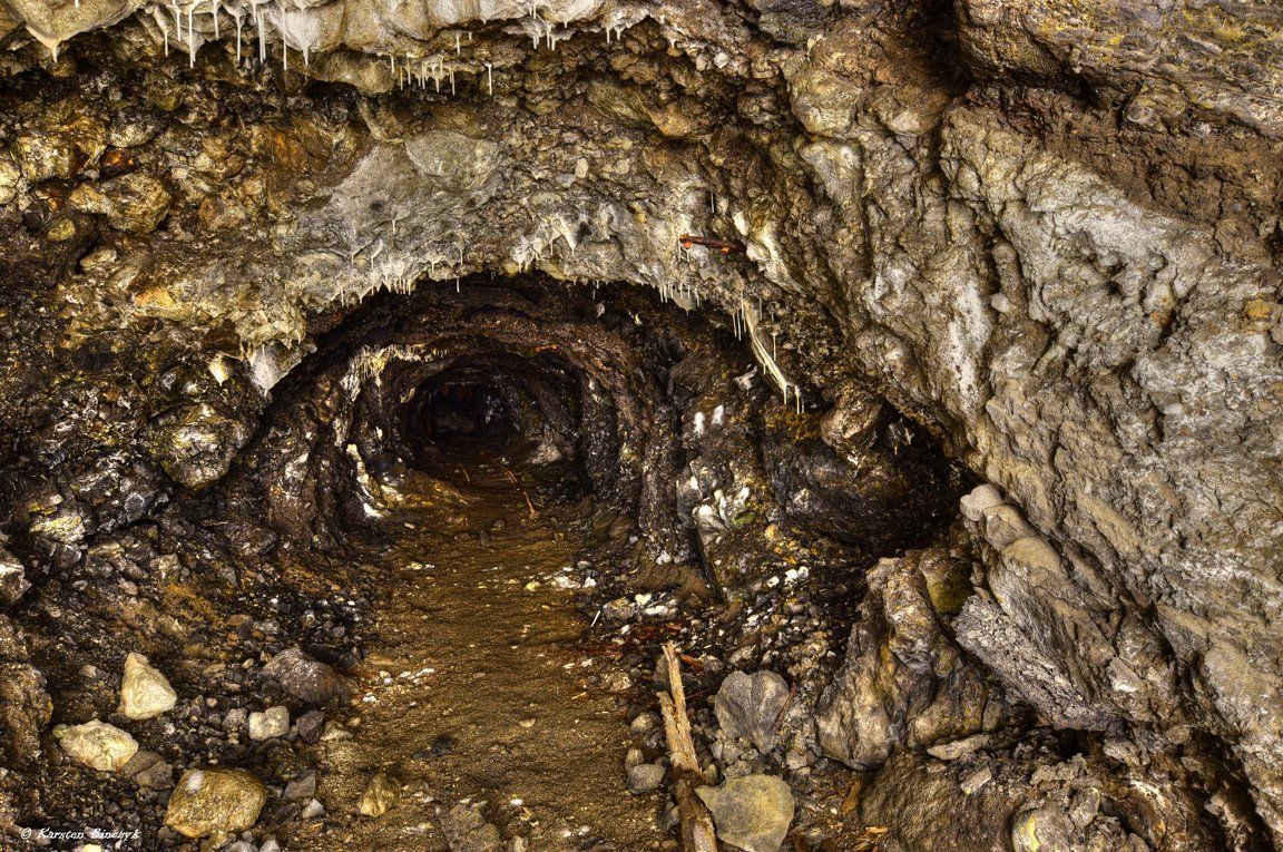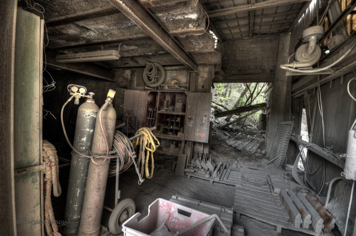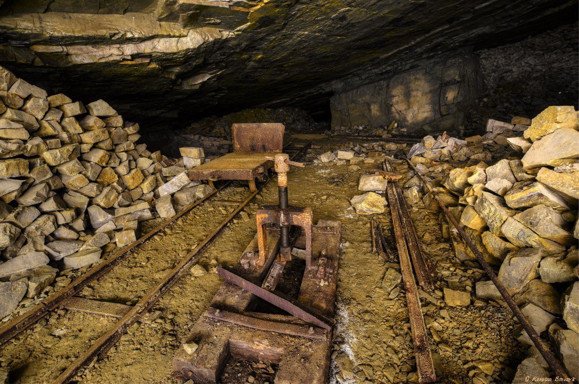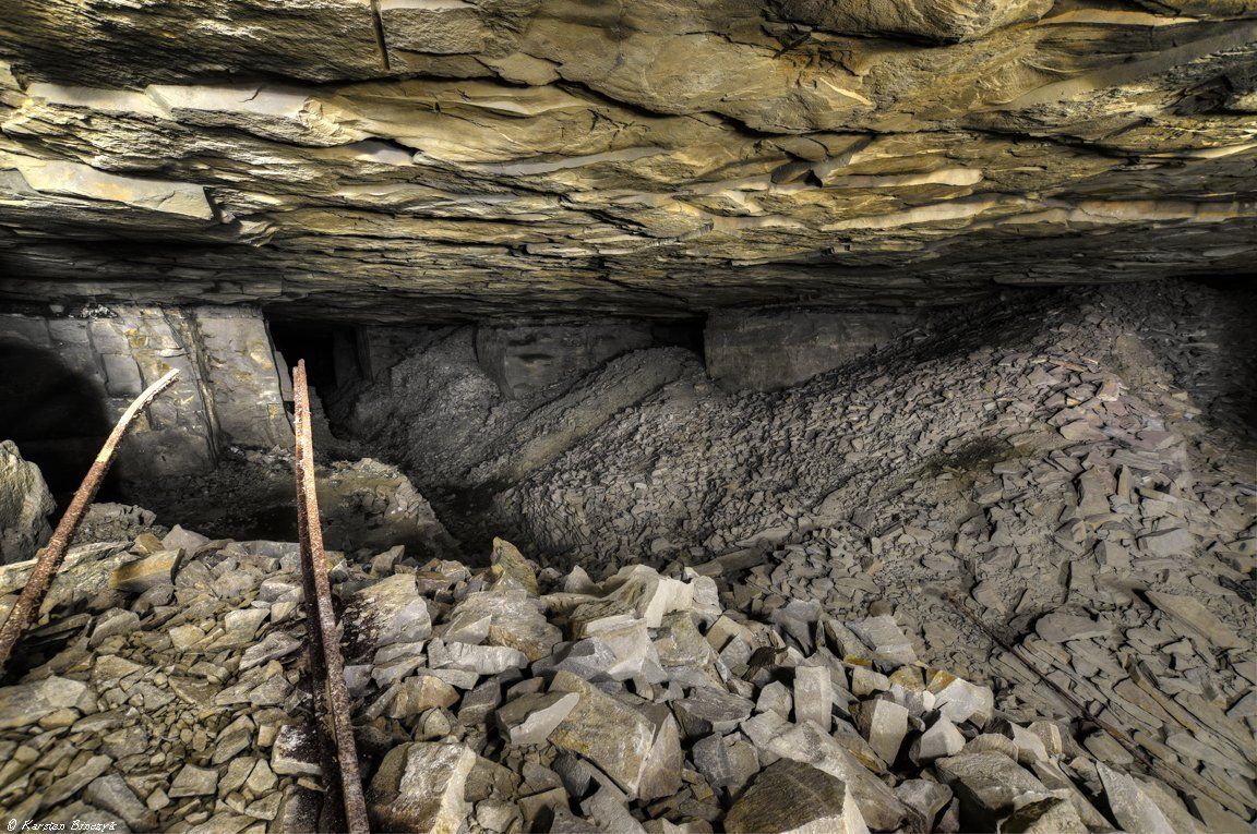 Wir waren mit einem Fledermausschützer unterwegs. Er zeigte uns einen unterirdischen Steinbruch wo bis etwa in die 1960 Jahre zb. Kopfsteinpflaster gewonnen hat. Übertage fallen nur im Herbst alte Stationen auf, wo man mit der Hilfe von Elektrobetriebenen Motoren über eine Haspel, Grubenwagen mit der Hilfe von einem sehr langen Drahtseilen aus der Tiefe der Erde gezogen hat. Fast 45 Grad steil sind die Eingangsstollen in die Tiefe. Mehrere 100 Meter steigen wir ab. An der First sehen wir alte Isolatoren aus Glas die einst Strom hier herunter brachten. Der Abbau von Steinen erfolge hier in Großen Kammern. Alle spaar Meter wurden große Stützpfeiler stehen gelassen. Nun Tauchten im Schein unserer Lampen die ersten Überbleipsel der letzten Betriebszeit auf. Alte Kipploren auf Schienen. Wir packten unsere Ausrüstung auf einer diese und schoben sie auf einen intakten Gleisbett durch die Unterwelt. Weiter tauchten wiederum andere Loren auf. Eine Schienenbiegemaschiene gut gefettet, ein Dutzend leere Karbitbehälter die einst den Brennstoff trocken hielten für die Handlampen der Arbeiter unter Tage. Bohrstangen, Bohrhämmer, Trinkflaschen und vieles mehr zeigte uns der freundliche Herr. Die tiefen teile des Steinbruchs standen unter glasklarem Wasser. Mit der Zeit wurde auch hier Müll von oben eingefüllt, aber das hält sich in Grenzen. Ohne gutes Schuhwerk ist hier nichts zu machen. Nach einer Zeit standen wir vor einem weiteren Gang der in die Tiefe führte. Mindestens 40 Blechfässer lagen davor. Wo es dort hin geht wissen wir nicht zu niedrig war die Stollenhöhe. Diese Aufnahmen brachten wir mit.